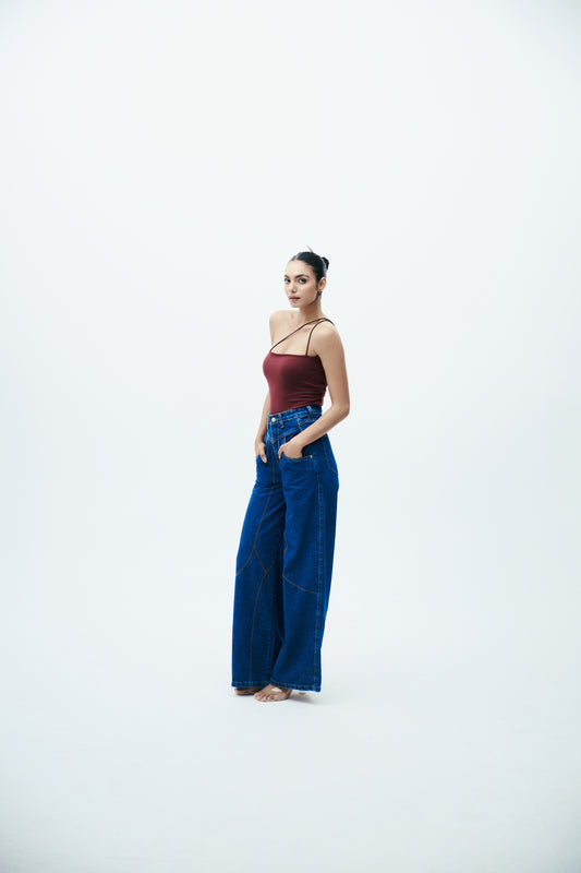 One-Shoulder Bodysuit: Nude Brown