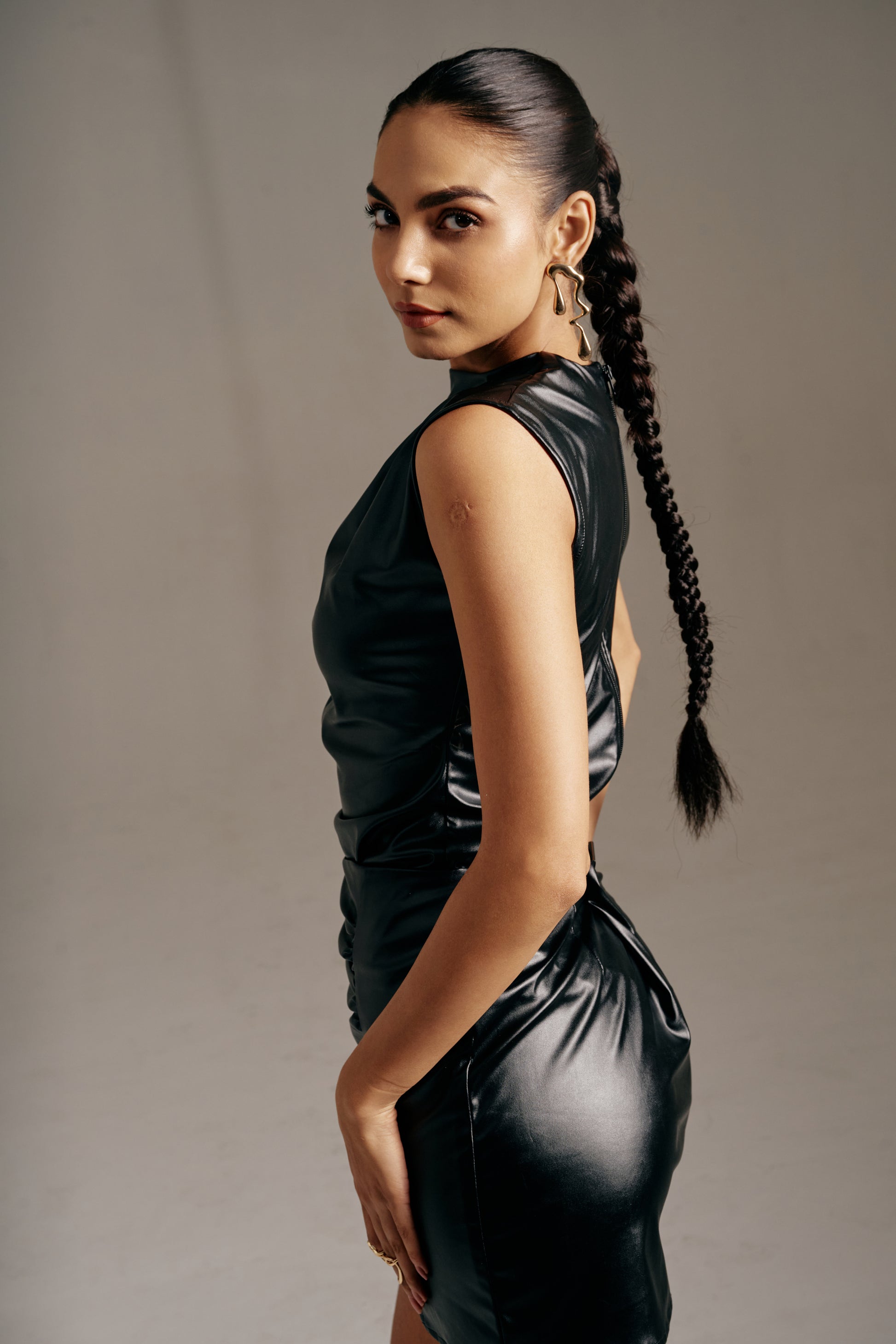 Crafted in deep wine-toned faux leather, the Wine Drape Top is the epitome of modern edge. The sleeveless cut and artful draping create a sculptural silhouette, blending boldness with refinement. Pair it with tailored trousers or skirts for an effortlessly polished statement look.