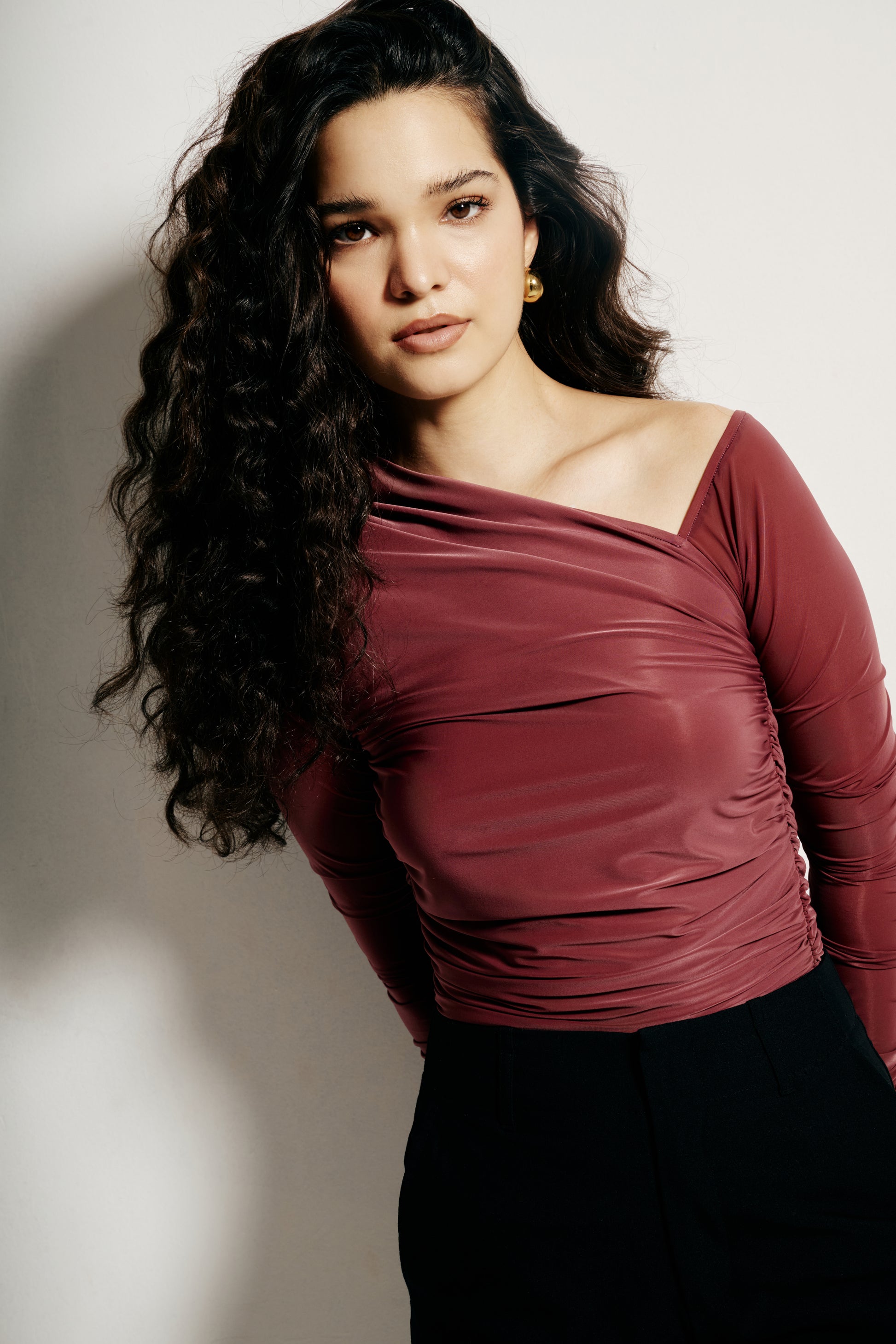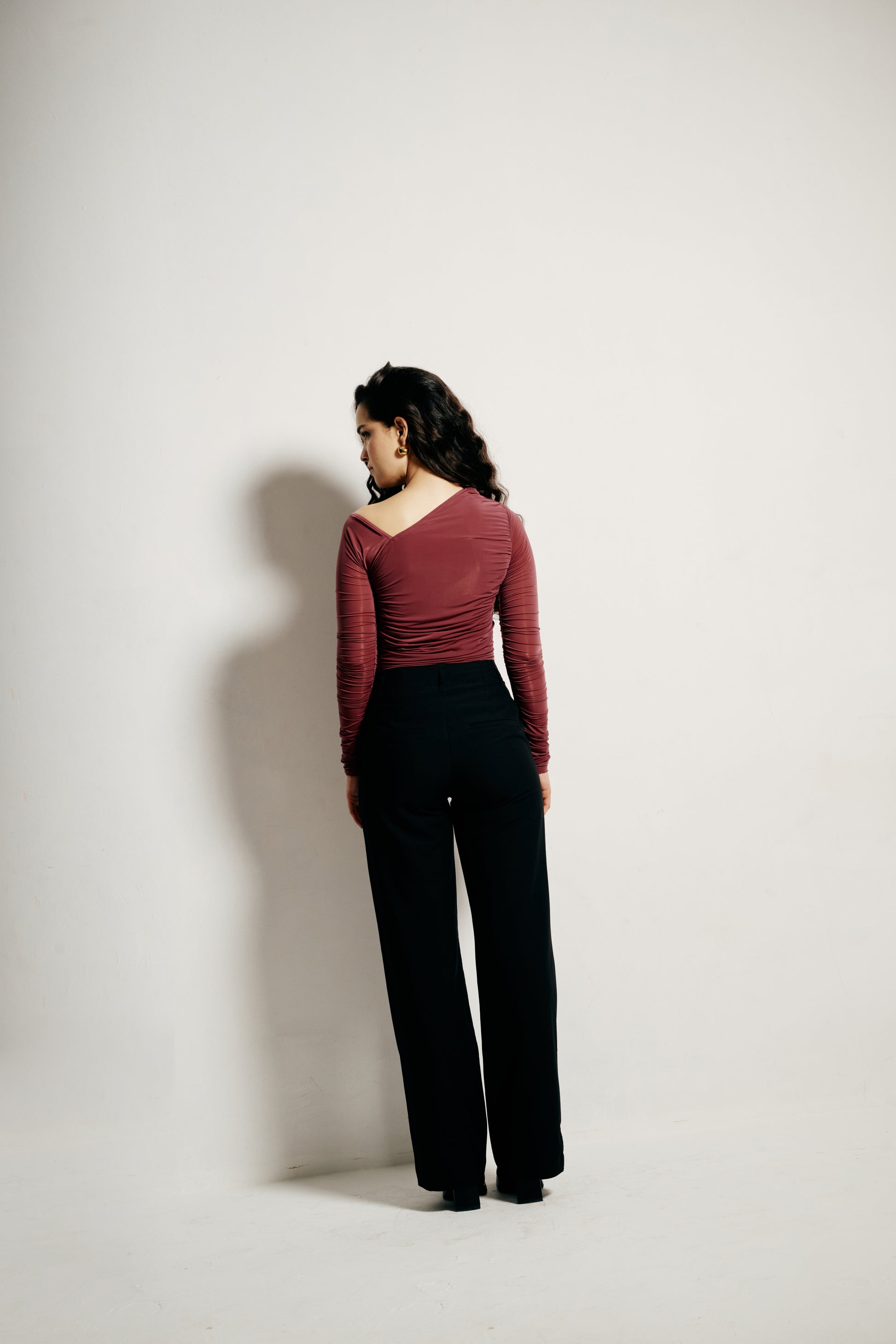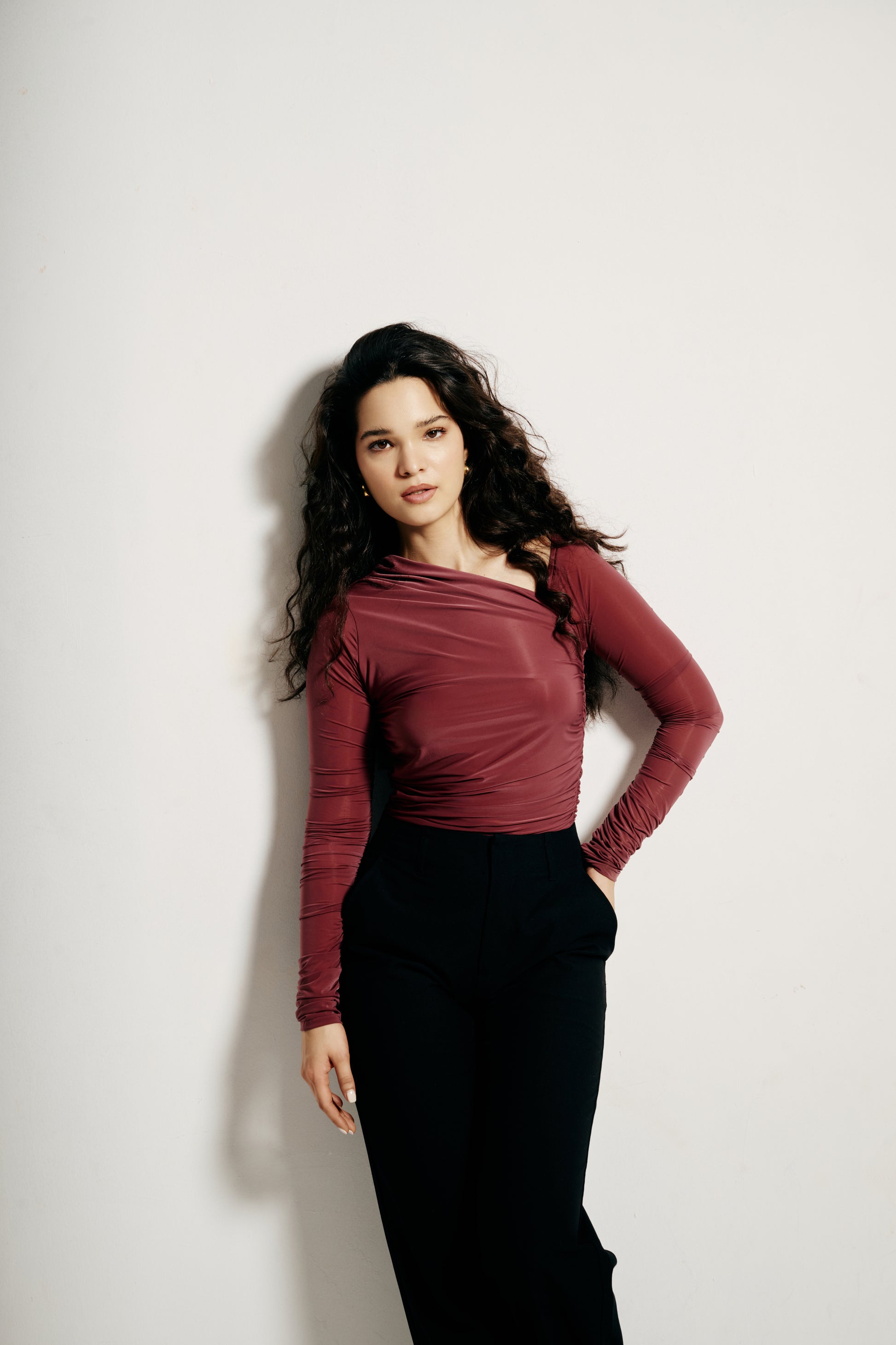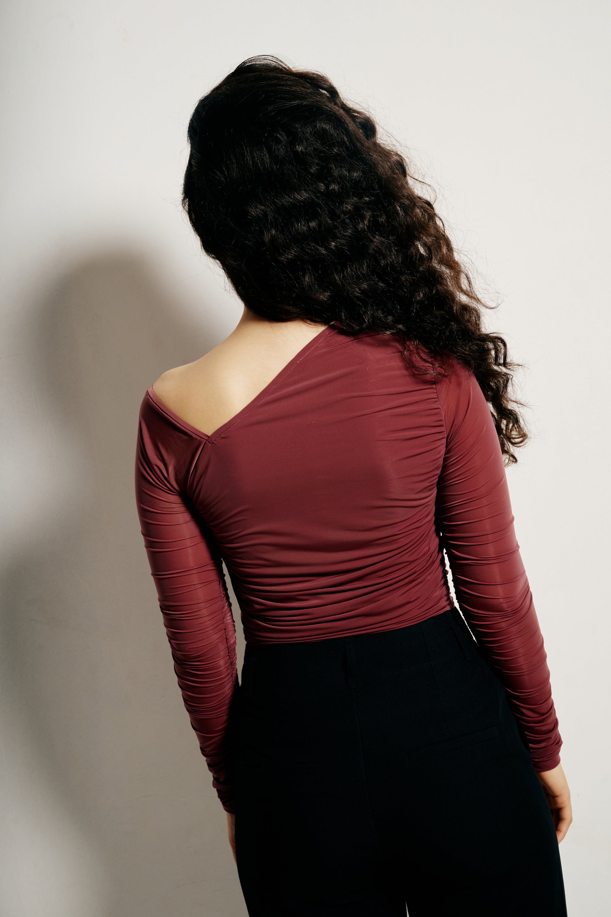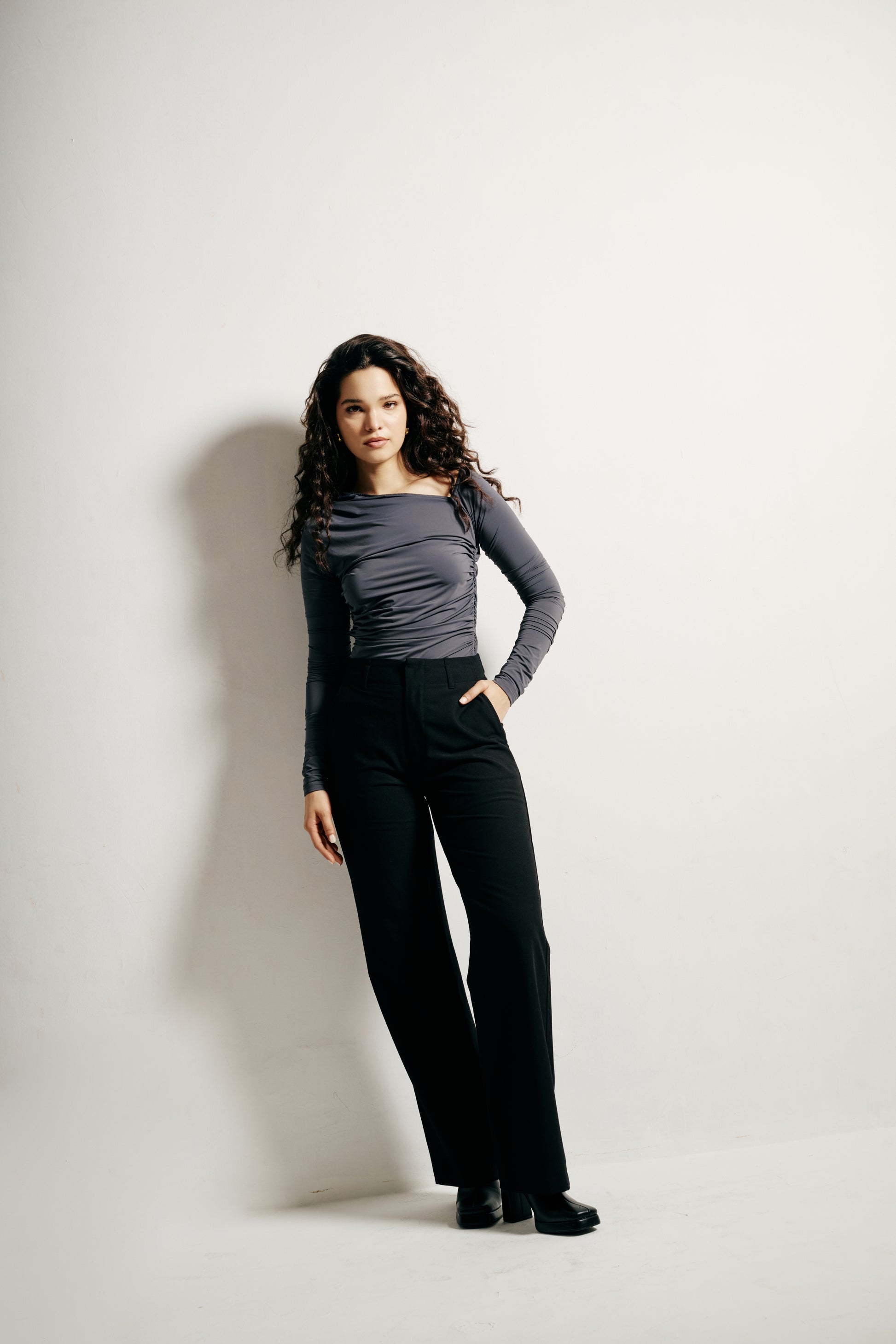 This One-shoulder Drape top offers understated drama with its asymmetric neckline and gathered sleeve. Crafted from soft, fluid fabric, it delivers a perfect balance of ease and elegance. Pair it with tailored trousers or sleek skirts to elevate your everyday wardrobe with a modern, feminine twist.